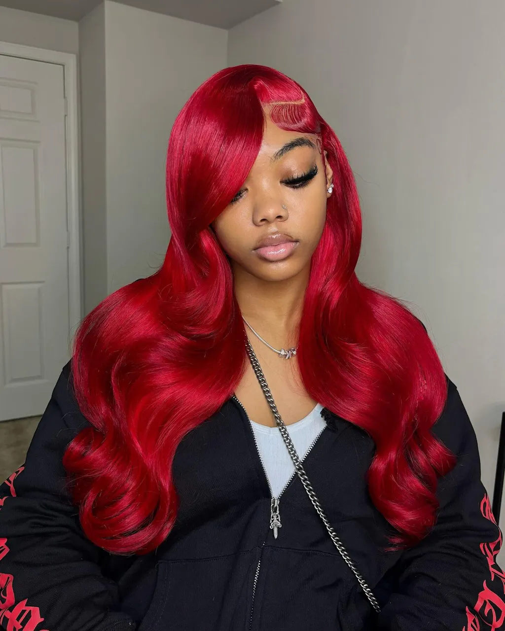 Im in love with this hair! Omg, this is the 22in body wave. & my stylist loved it and laid it to perfection. Im doing nothing but red. This color sold me. They call me RED VELVET, LOL! Thank you.