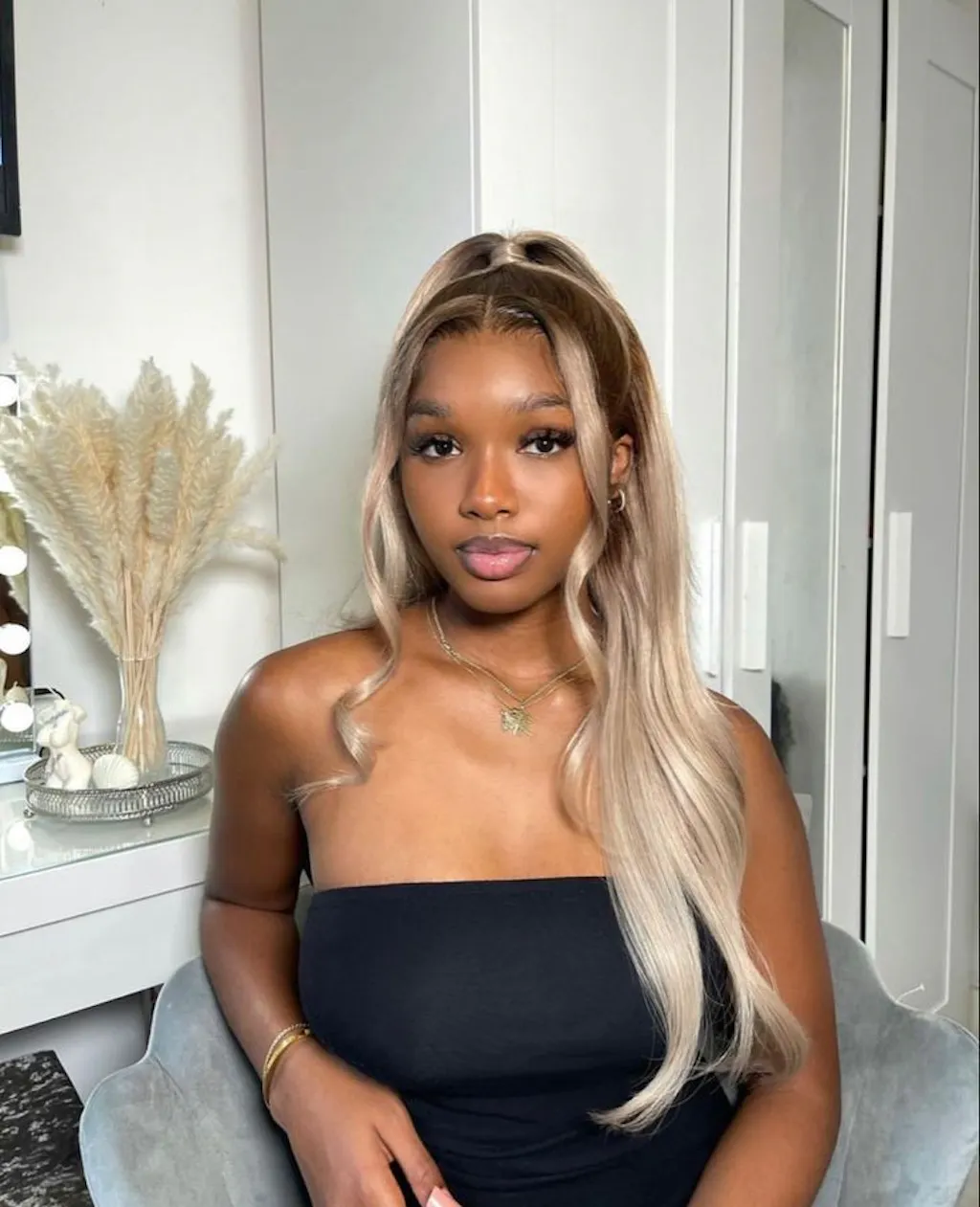 I really love the color of this wig. The ombre blonde color of this wig is perfect with a beautiful ombre and it suits my black girl perfectly! No further trimming is needed. No odor and very little hair shedding. The wig comes pre-plucked as well. It also holds the curls very well! I would definitely recommend!